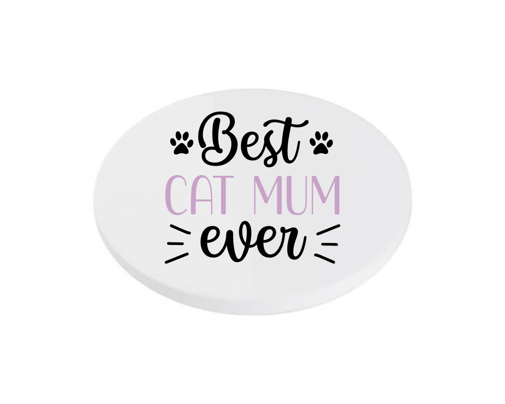 Best Cat Mum Ever Coaster, 10.8 cm marble with cork base. A sentimental gift for cat lovers that combines style, function, and love for pets.