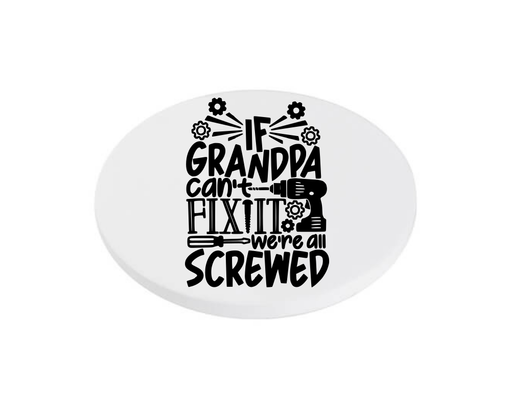 If Grandpa Can’t Fix It Coaster, 10.8 cm marble with cork base. A humorous and practical gift for the handy grandpa everyone relies on.