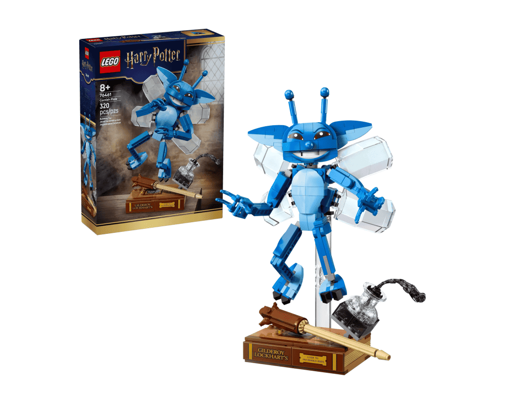 Bring the mischief of a Cornish Pixie to life with LEGO® 76461. This 320-piece set for ages 8+ includes a posable figure with moveable head, arms, and fingers, a transparent display stand, and accessories such as a buildable Gilderoy Lockhart book and spilling ink bottle. Perfect for play or display, this set sparks creativity and imaginative storytelling.