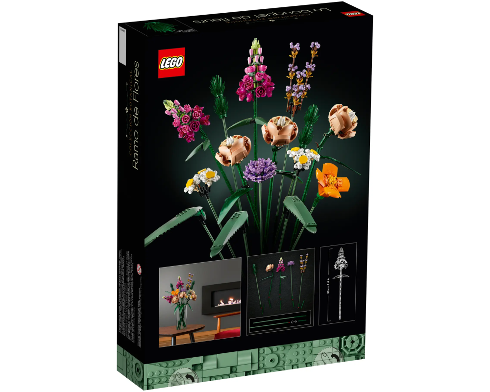 The LEGO® 10280 Flower Bouquet is an 18+ set with 756 pieces. Featuring adjustable stems and posable petals, this over 36 cm tall bouquet never fades.