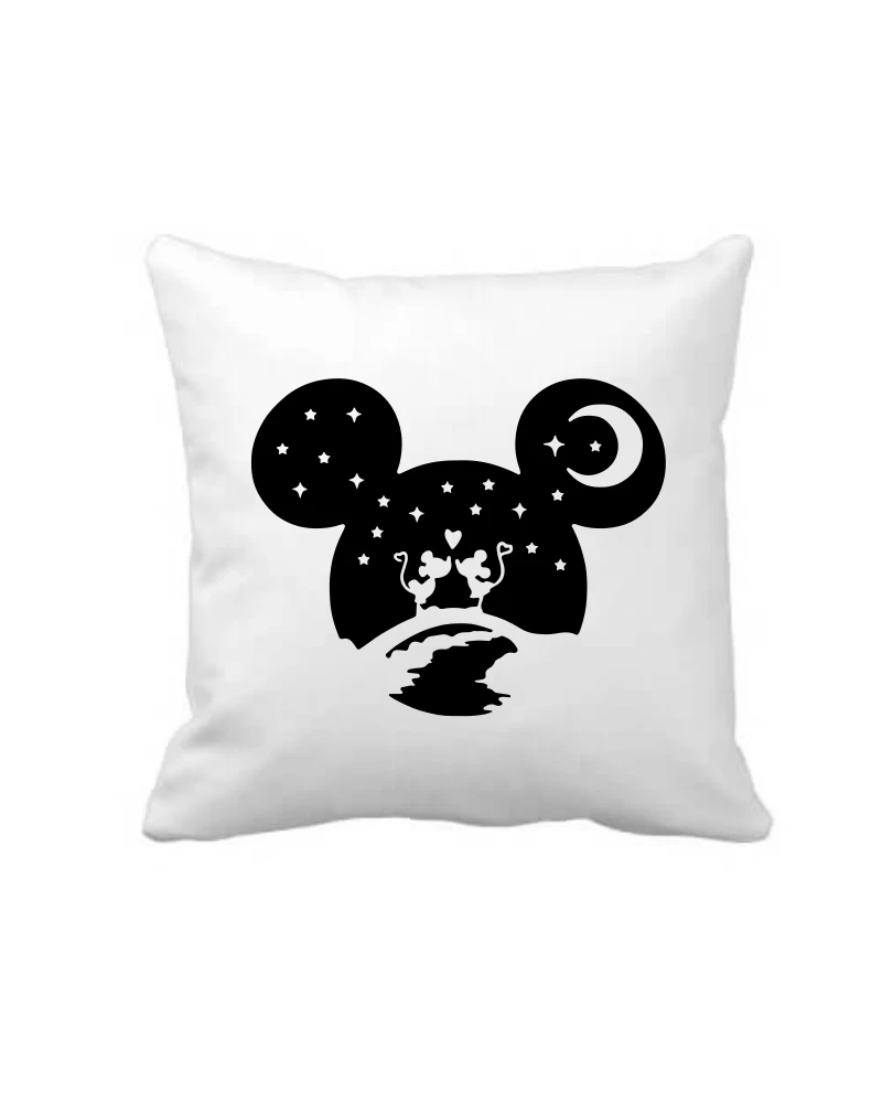 The Mickey Ears Love Silhouette cushion cover features a striking black silhouette design with a romantic scene set beneath the night sky. With stars a crescent moon and a heart detail, this cushion symbolises love magic and togetherness in a bold and modern way.
