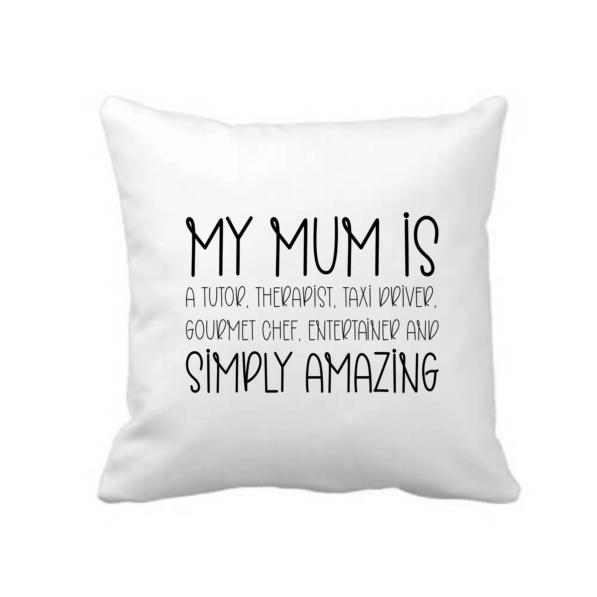 Celebrate everything that makes mum so special with this My Mum Is Simply Amazing Cushion Cover. Featuring the heartfelt message “My mum is a tutor, therapist, taxi driver, gourmet chef, entertainer and simply amazing”, this design captures the many roles mums take on every day with love and dedication.