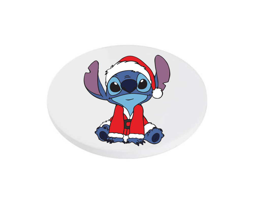 Stitch Christmas Coaster, 10.8 cm with cork base. Fun Disney design featuring Stitch in a festive outfit, ideal for holiday décor and gifting.