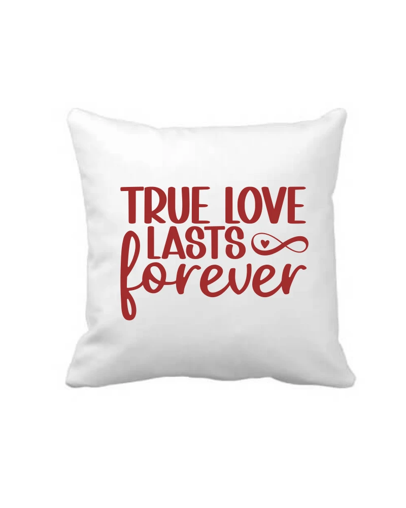 40x40cm cushion cover featuring the message True Love Lasts Forever. Available as cushion cover only or with filler, perfect for romantic home decor or gifting.