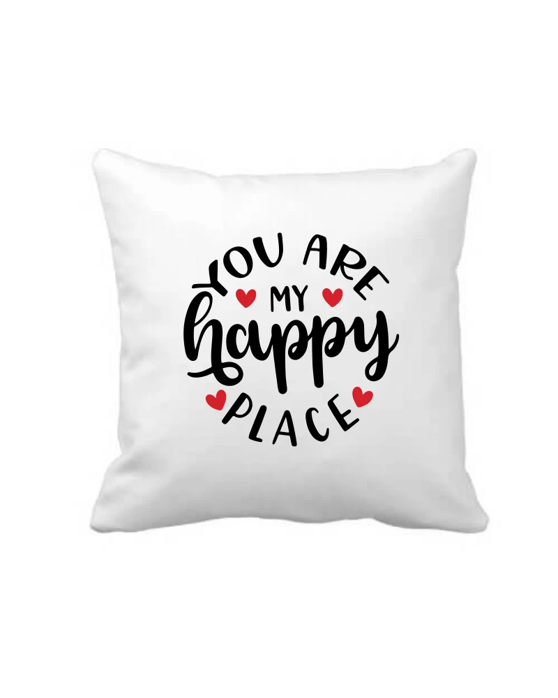 Tags: cushion cover, happy place cushion, home accessory, romantic decor, valentine gift